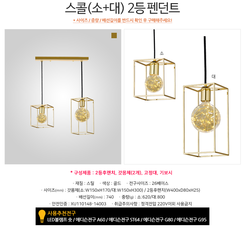 • 품명 및 모델명스콜(소+대) 2등 펜던트