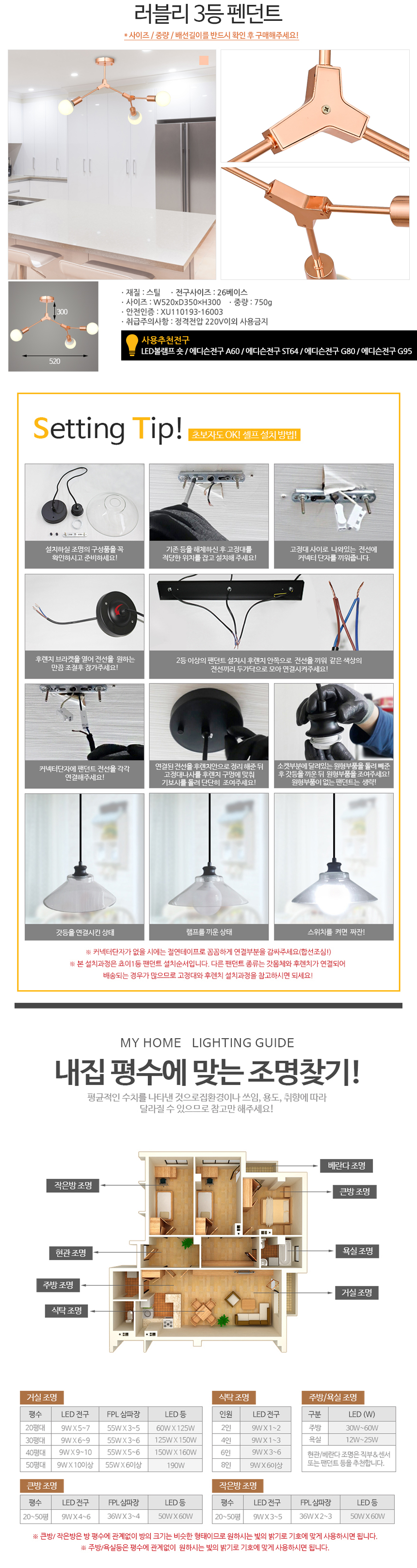 • 품명 및 모델명러블리 3등 직부펜던트
