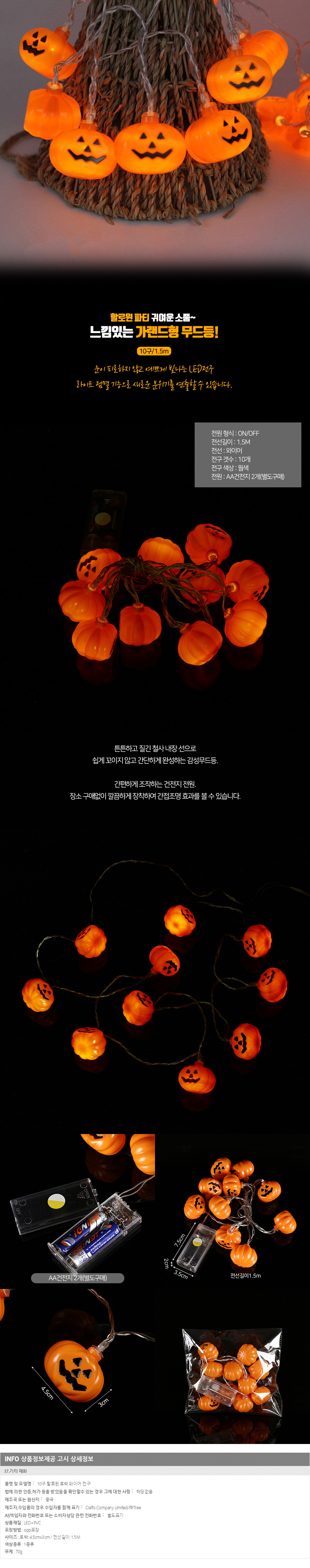 할로윈 LED 호박가랜드 (10구) 차박 캠핑 분위기 장식 무드등