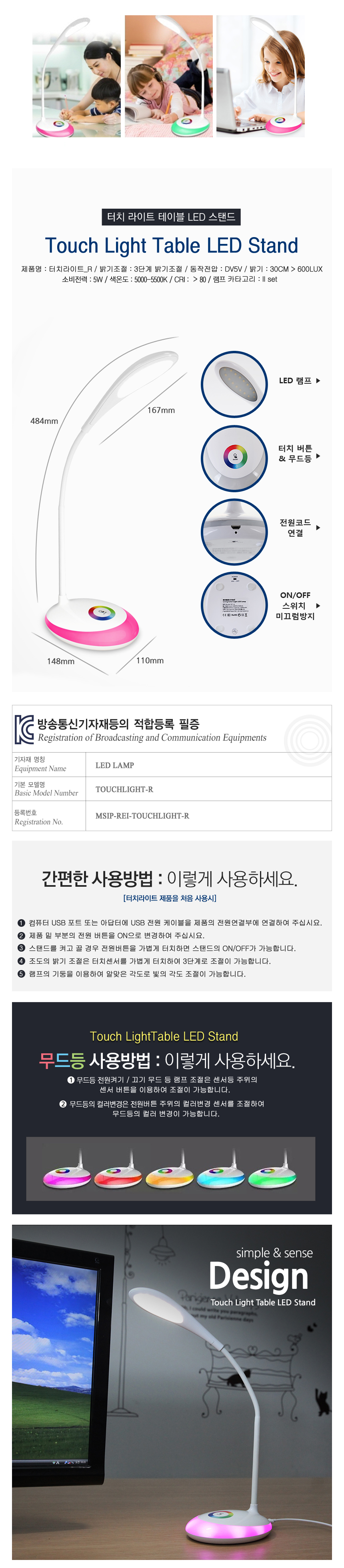 • 품명 및 모델명LED 스탠드(터치라이트_R)
