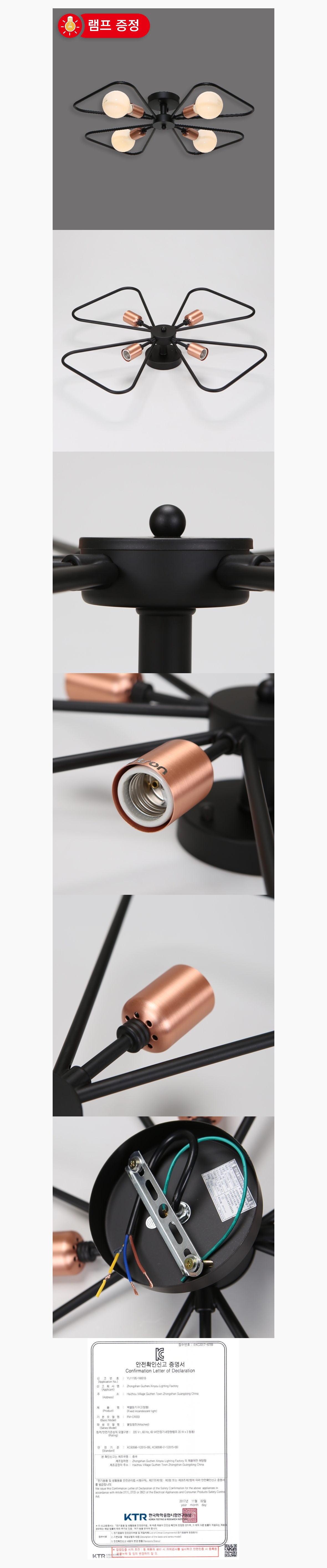 인테리어 조명 4등 직부등 검정 백열등기구 이미지/