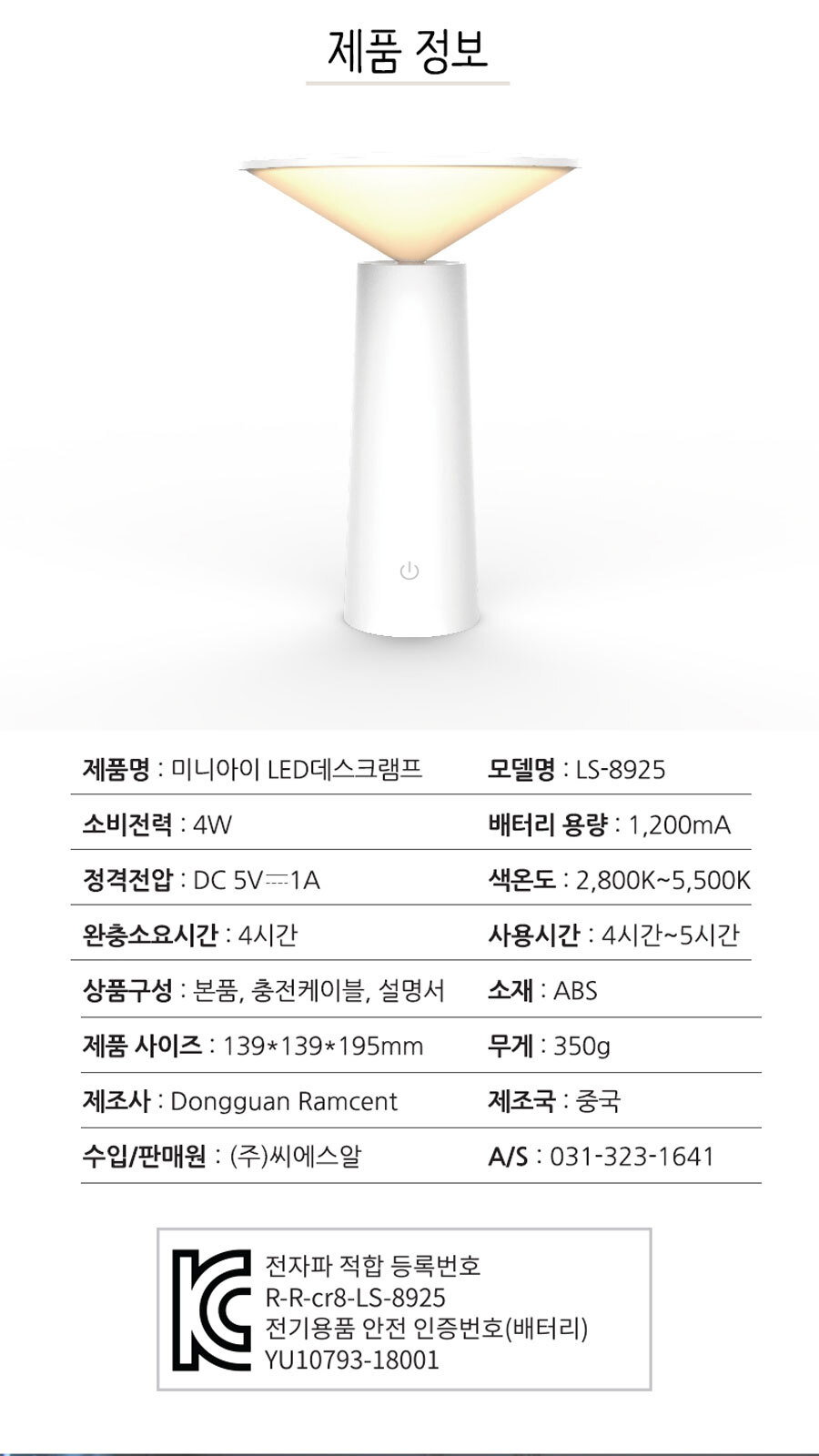미니아이 LED 데스크 램프 취침등 무드등 USB충전 이미지/