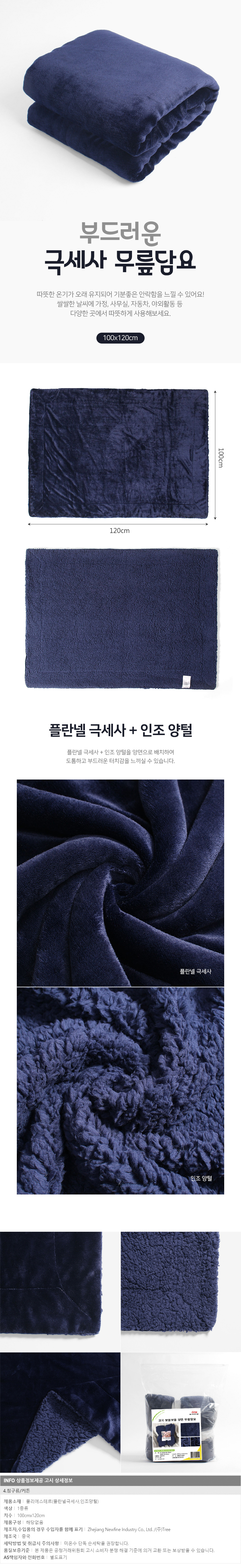 코지 보들보들 양면 무릎담요(네이비) (100x120cm) 이미지/