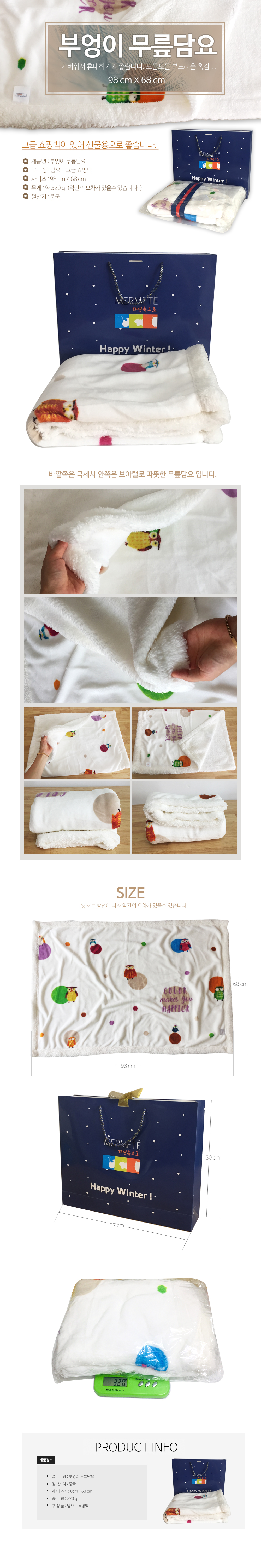 [부엉이밍크담요]무릎담요/밍크담요/쇼핑백포함[영웅무역] 이미지/