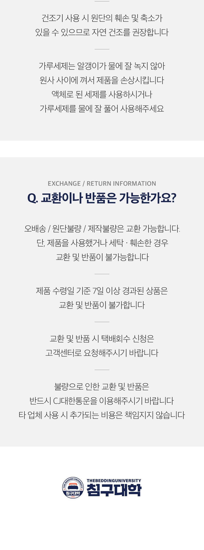 • 초기제품 이상의 경우 동일한 제품으로 1:1 교환원칙, 사용후 제품이상은 A/S를 원칙으로 합니다.