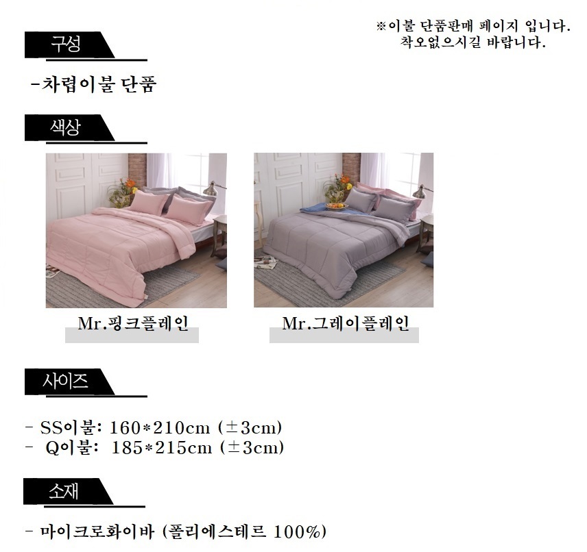 1. 제품소재 : 마이크로화이바(Polyester 100%)