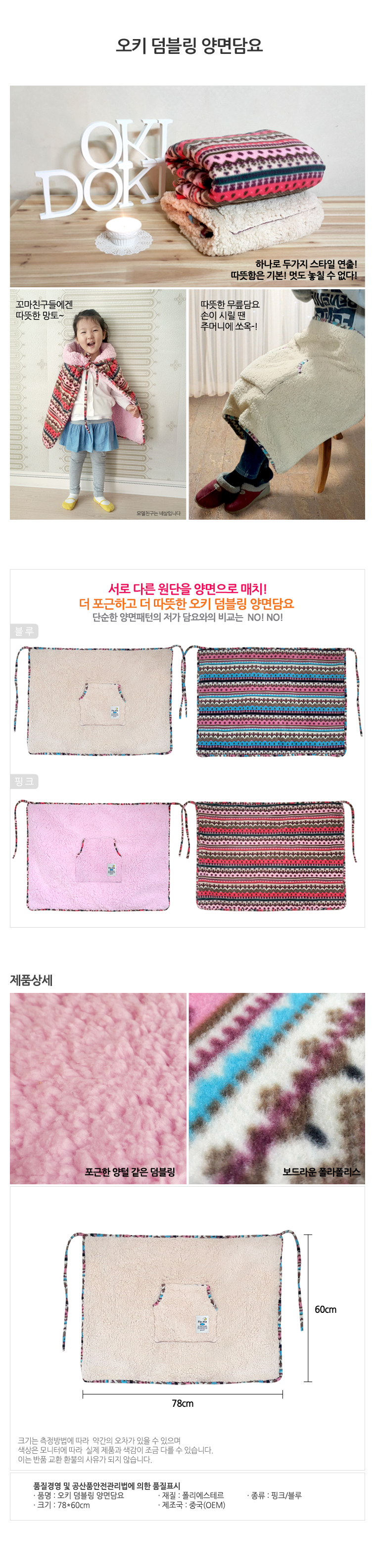 오키 덤블링 양면담요/담요/무릎담요/블랭킷/양털담요/단체선물/판촉물/방한용품/겨울용품