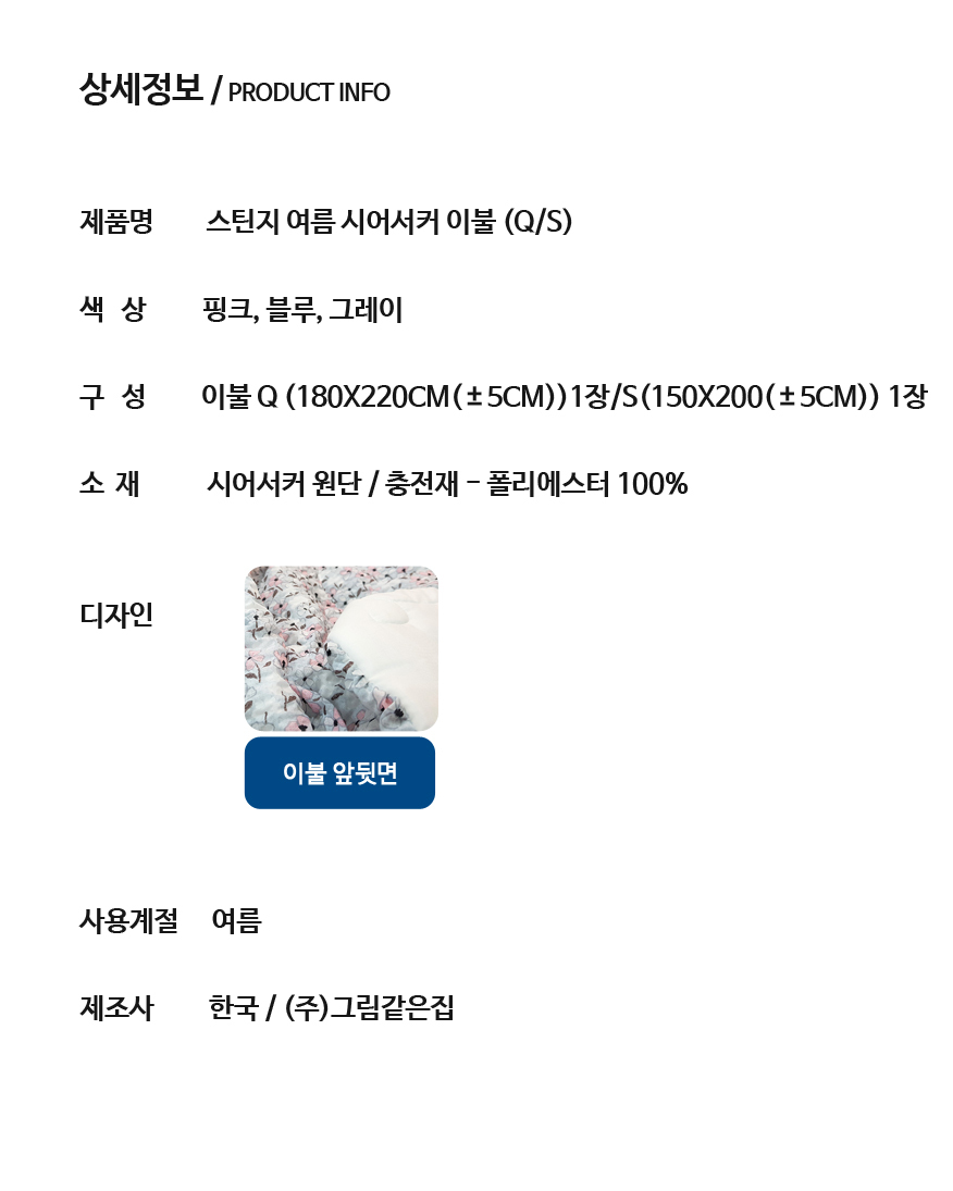 모델명 스틴지 여름 시어서커 이불 Q/S