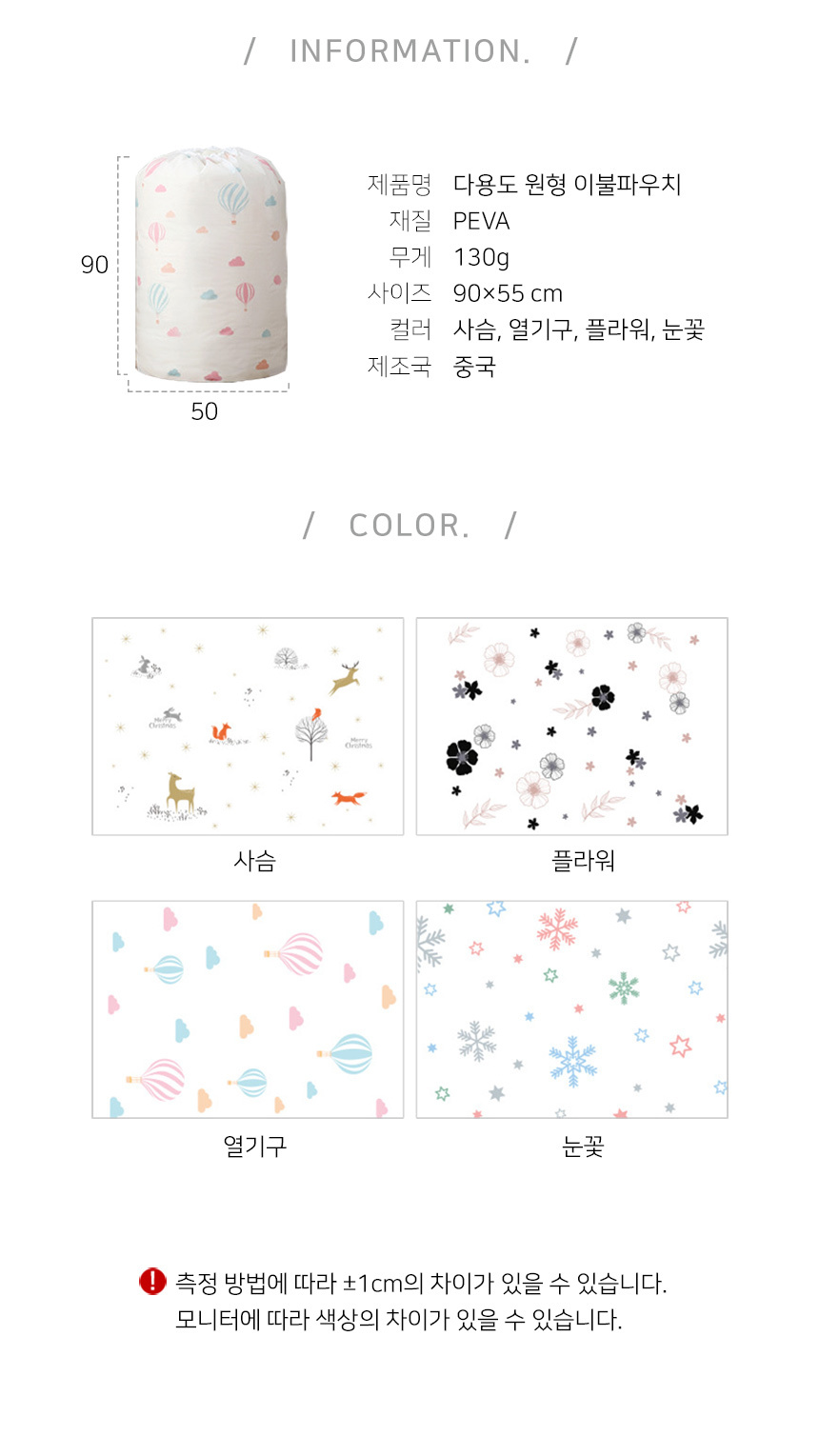 1. 품명 및 모델명 : 다용도 원형 이불파우치