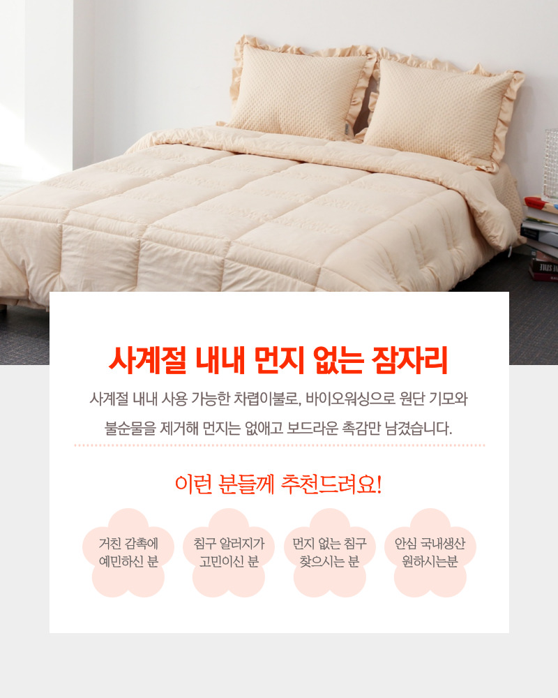 - 치수S 160 X 210 (±2~5cm) Q 200 X 230 (±2~5cm) 베개커버 50 X 70 (±2~5cm)