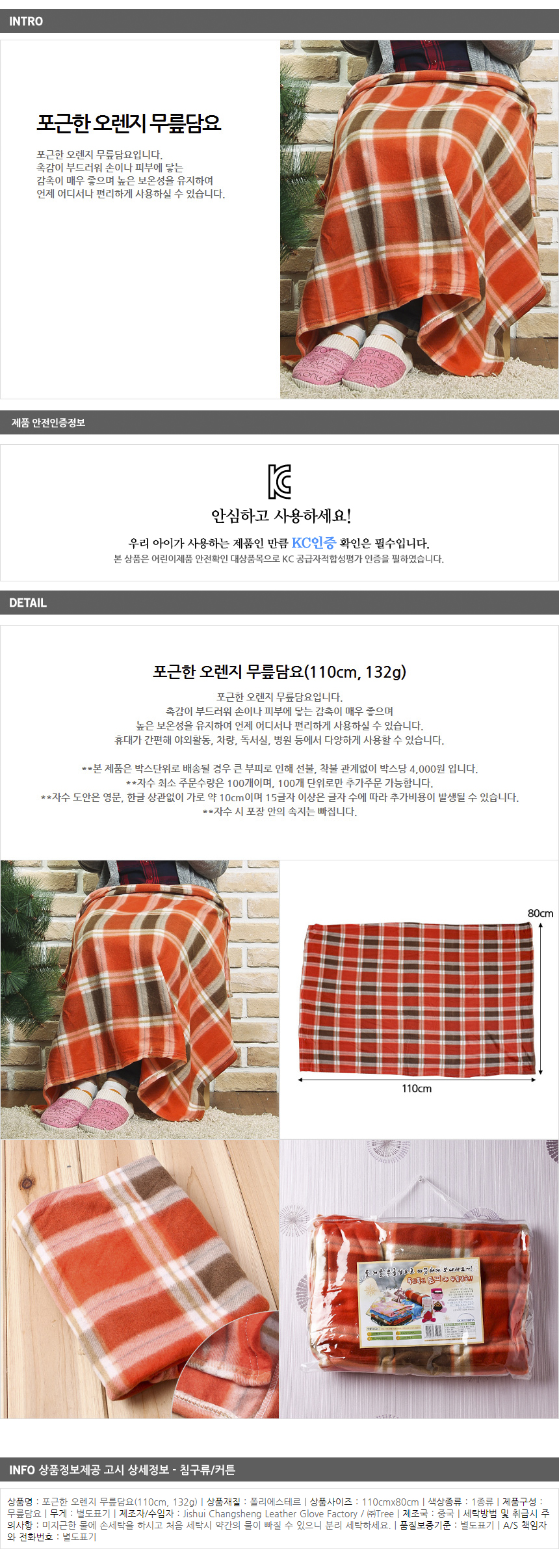 포근한 오렌지 무릎담요 (110cm/132g) 이미지/