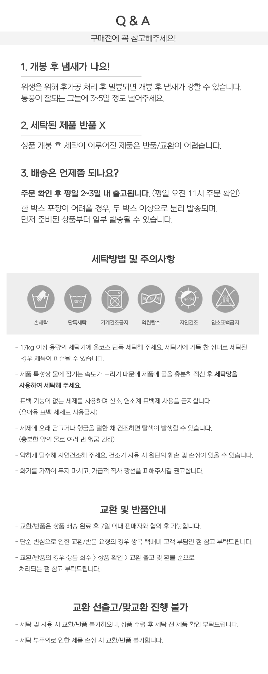 7. 세탁방법 및 취급시 주의사항 : 상세정보 별도표기