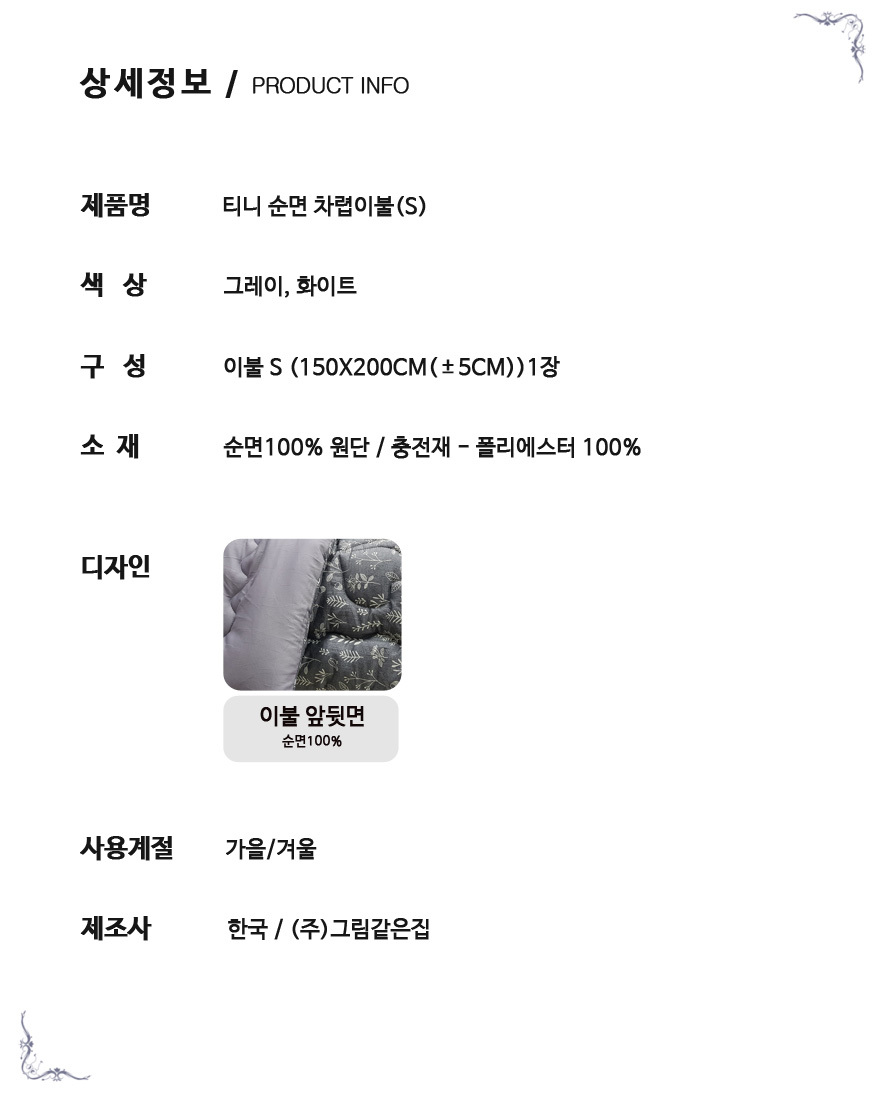 4. 제품구성 : 이불 1장