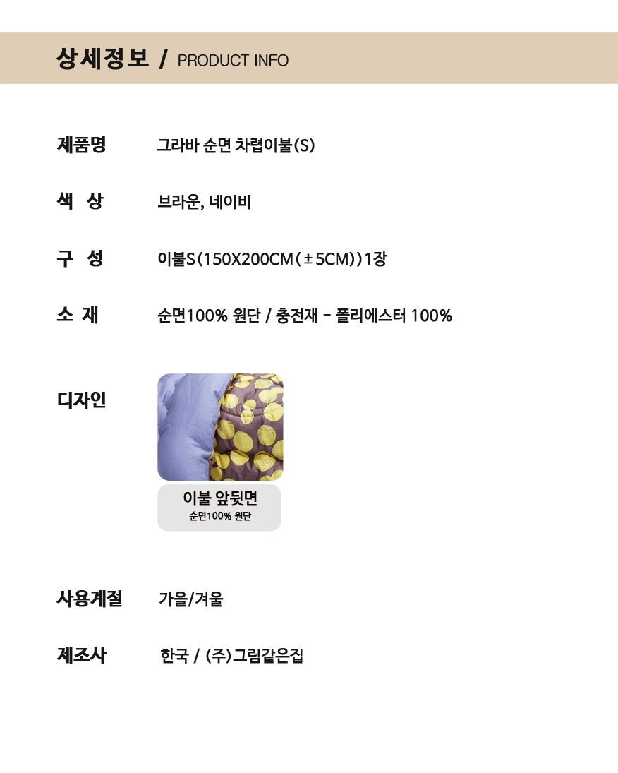 신학기 봄신상품 순면100% 그라바 차렵이불 S 이미지/