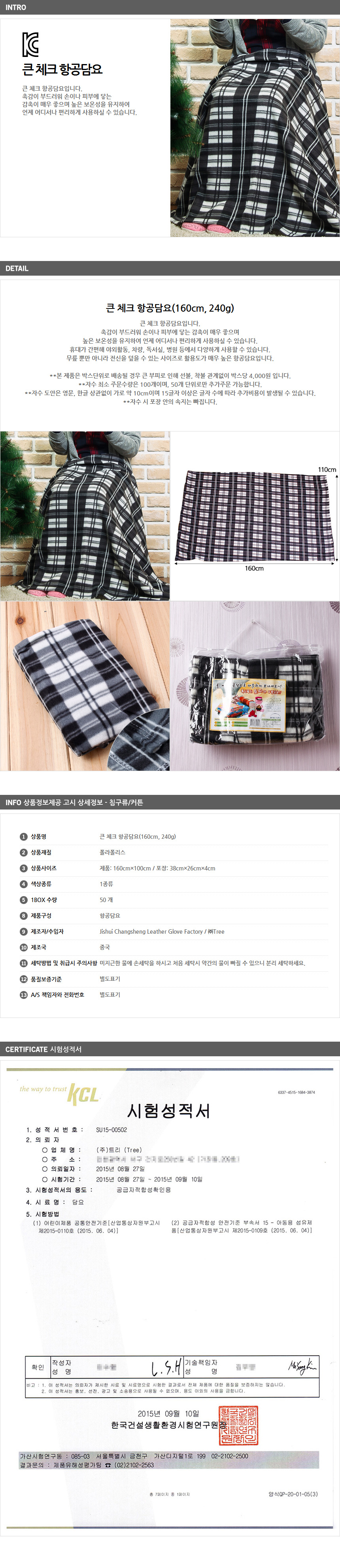 큰 체크 항공담요(160cm 240g)/기프트/가성비최고 이미지/