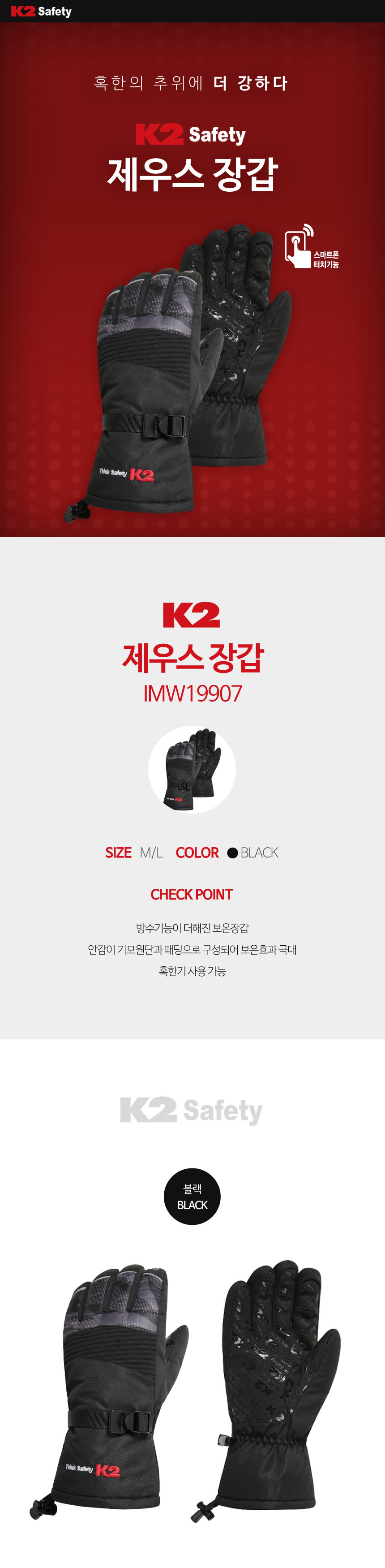 케이투세이프티 K2 스키 장갑 겨울 한파 방한 스마트폰 터치 글러브