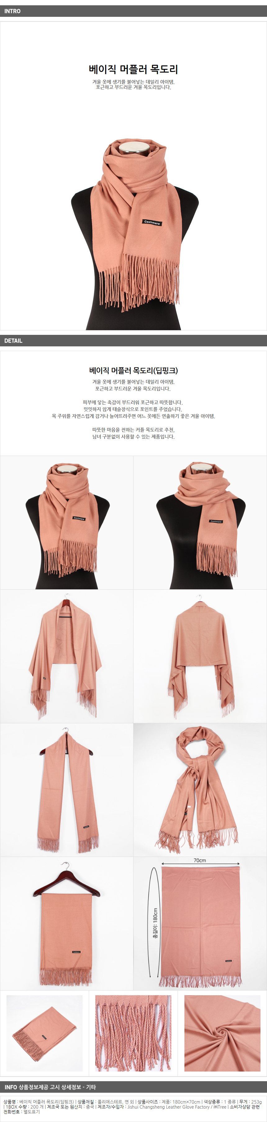 1. 품명 및 모델명 : 베이직 머플러 목도리(딥핑크)