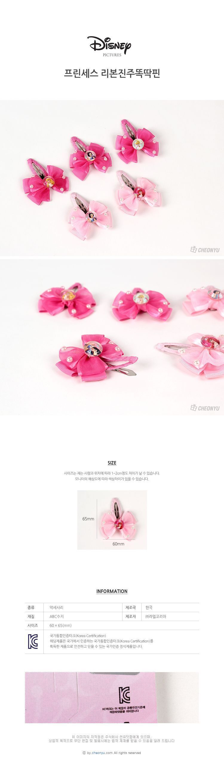 모델명 프린세스 리본 진주 똑딱핀 랜덤