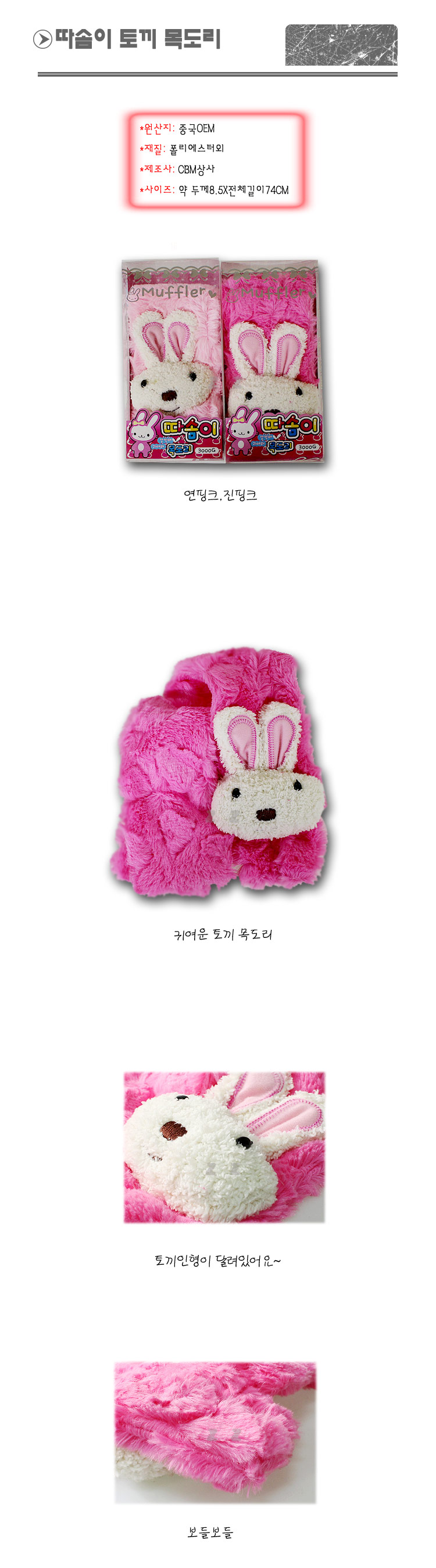 CBM상사 2가지 색상 따솜이 토끼 목도리 이미지/