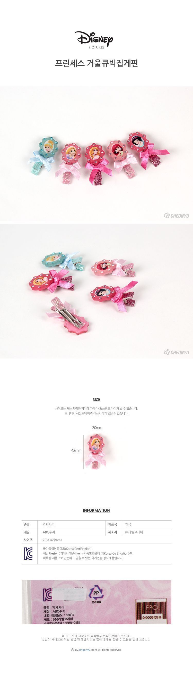 모델명 프린세스 거울 큐빅 집게핀 랜덤