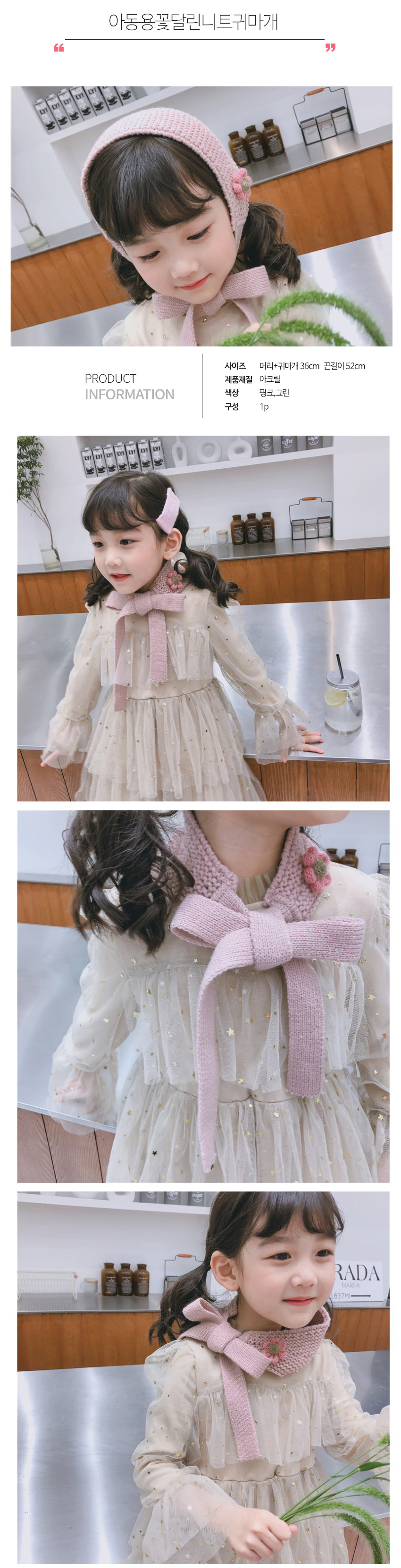 아동용 꽃달린 니트귀마개 어린이귀마개 니트아동귀마개 니트어린이귀마개 유아귀마개 방한귀마개