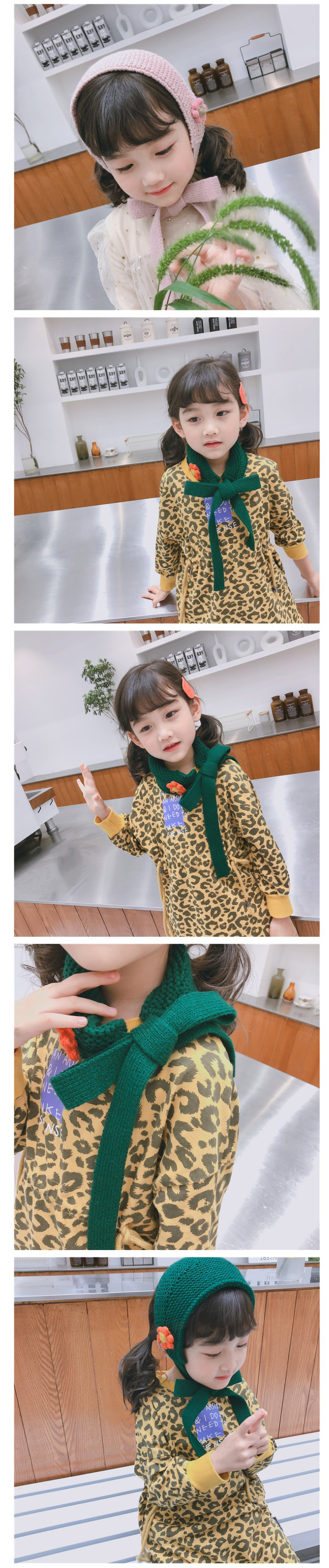아동용 꽃달린 니트귀마개 어린이귀마개 니트아동귀마개 니트어린이귀마개 유아귀마개 방한귀마개  이미지/