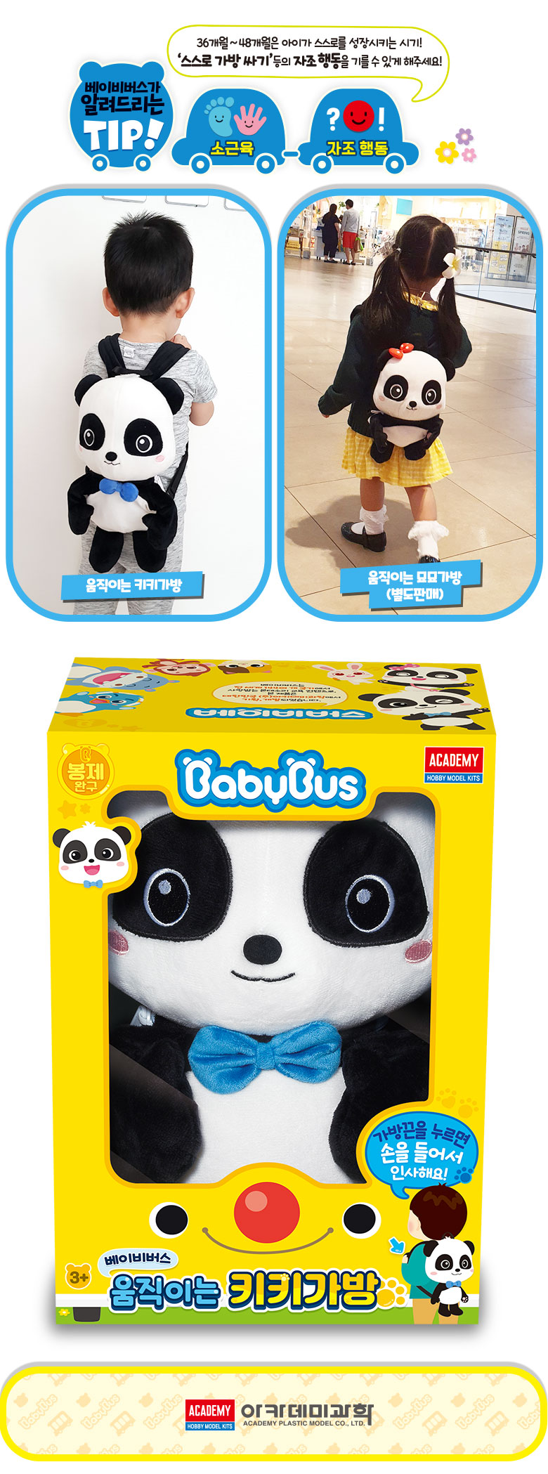 아카데미과학 베이비 버스 키키 가방 케릭터 유치원 어린이 백팩