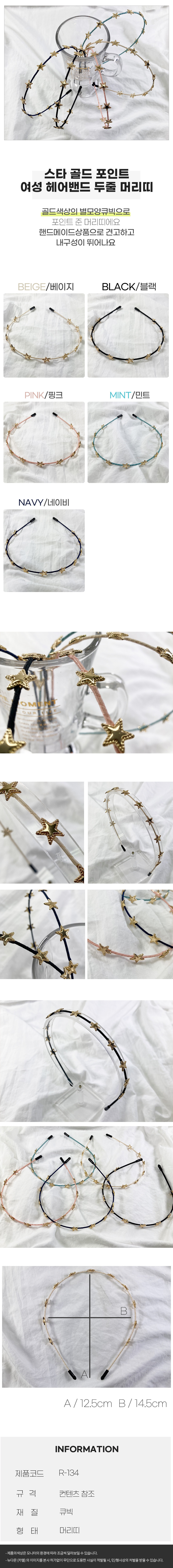 여성 별 큐빅 한줄 머리띠 헤어밴드 이미지/