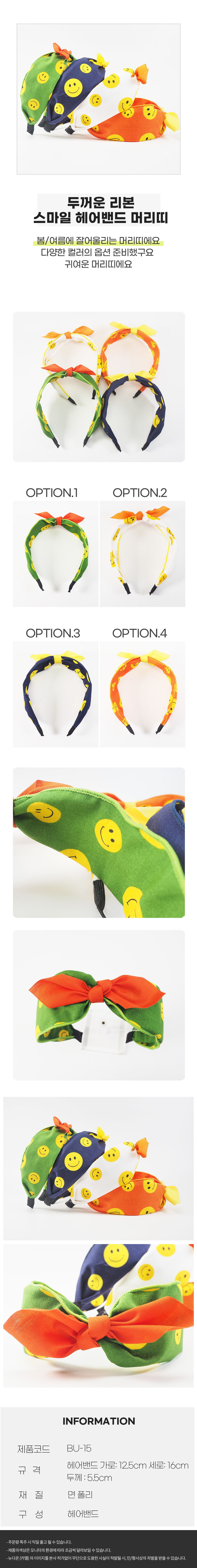 성인 아동 스마일 두꺼운 리본 머리띠 헤어밴드 이미지/