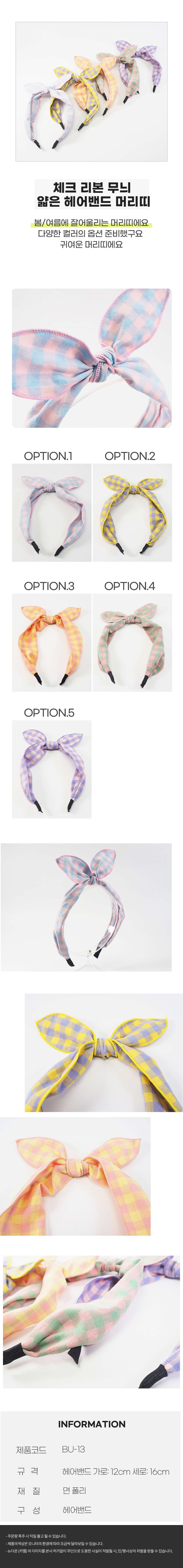 유아동 얇은 체크 리본 머리띠 헤어밴드 이미지/