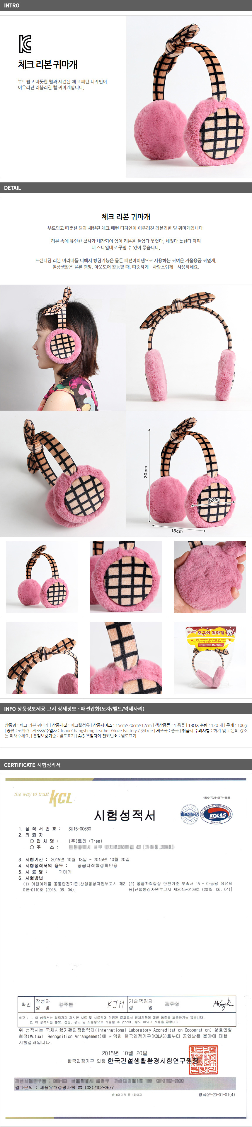 1. 품명 및 모델명 : 체크 리본 귀마개