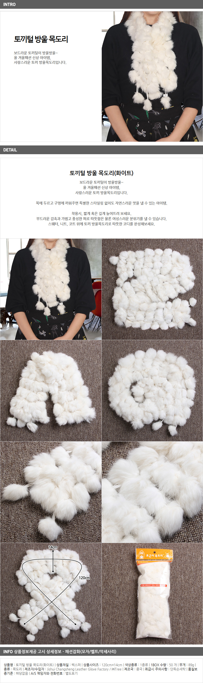 토끼털 방울 목도리(화이트) (여성용) / 머플러 퍼