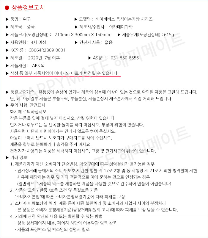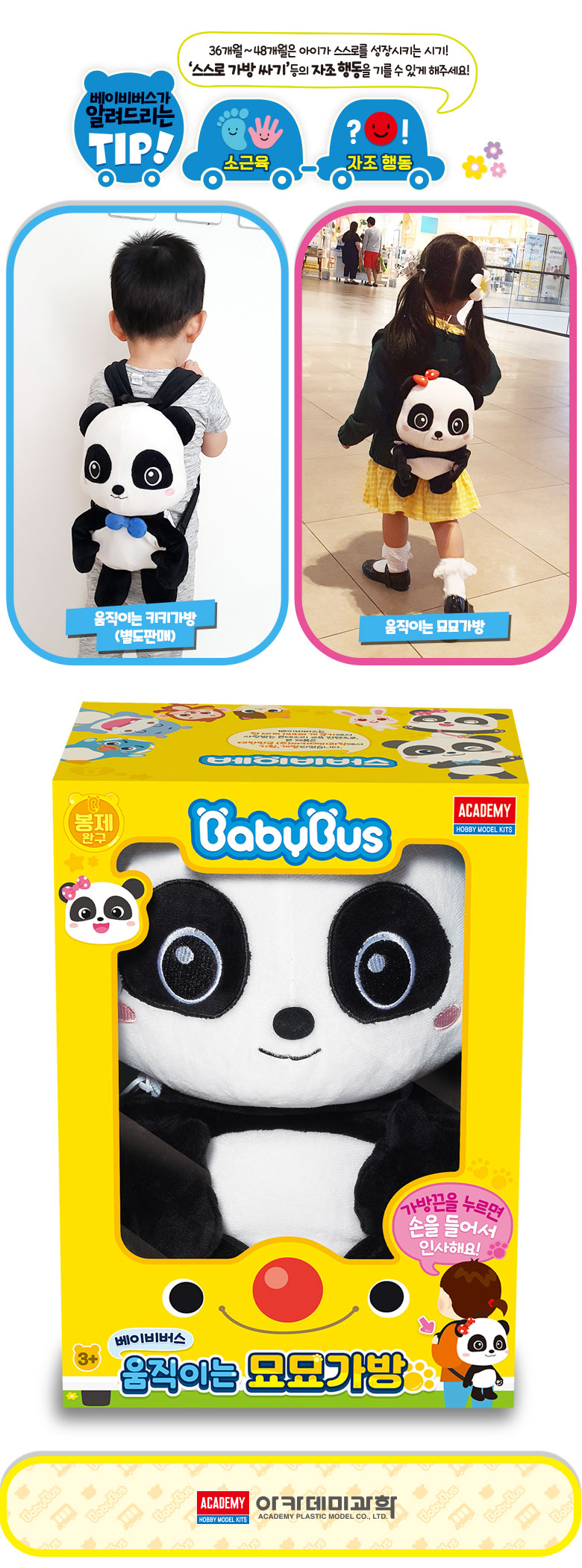 아카데미과학 베이비 버스 묘묘 가방 케릭터 유치원 어린이 백팩
