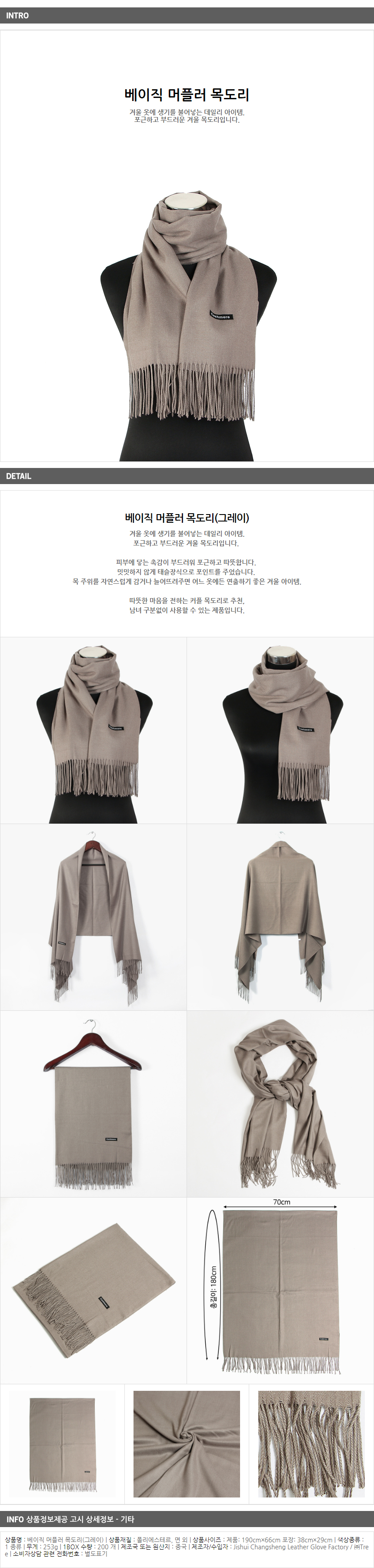 1. 품명 및 모델명 : 베이직 머플러 목도리(그레이) (여성용)