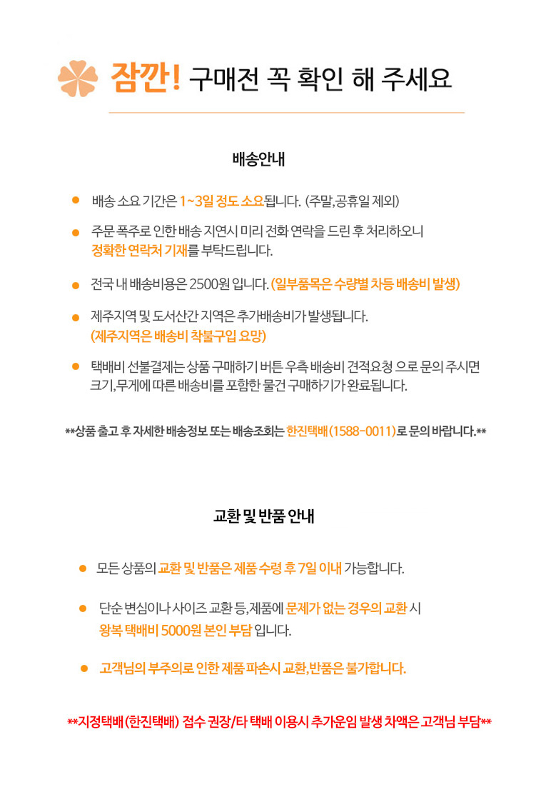 • 반품시 배송비전액+박스포장비1000원 구매자부담.통화없이 반품은 불가능합니다,