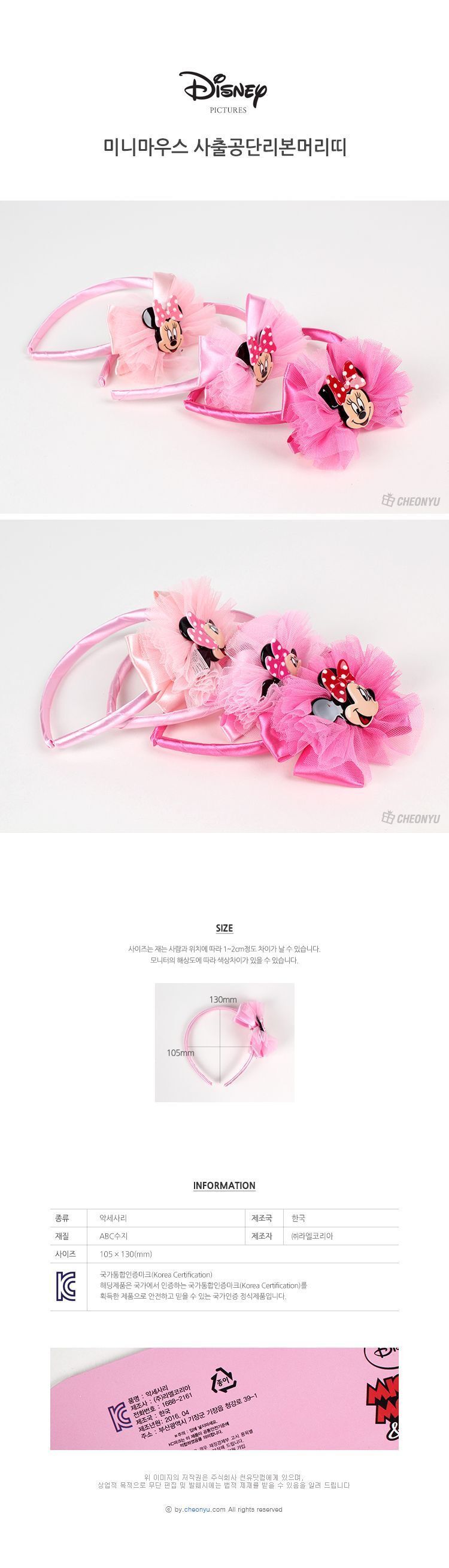 모델명 미니마우스 사출 공단리본 머리띠