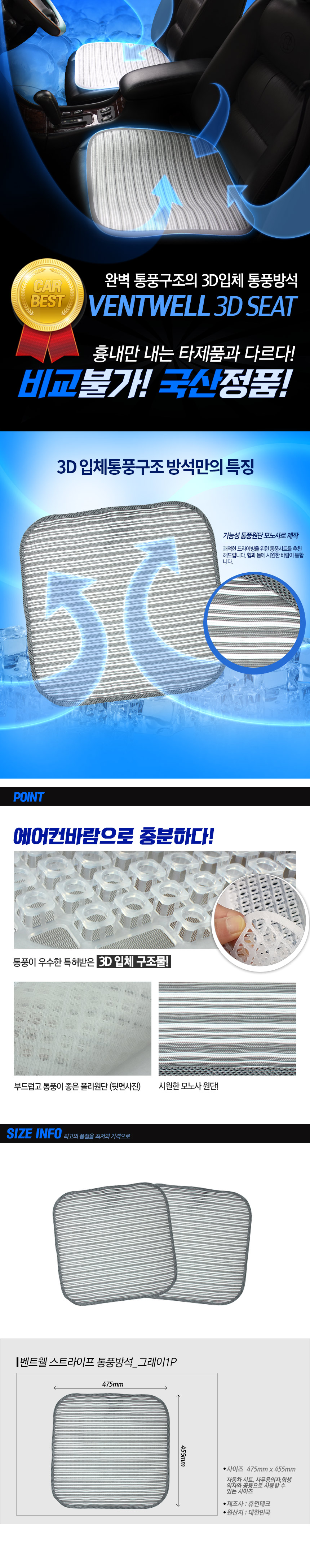 통풍방석 사무방석 자동차방석 스트라이프