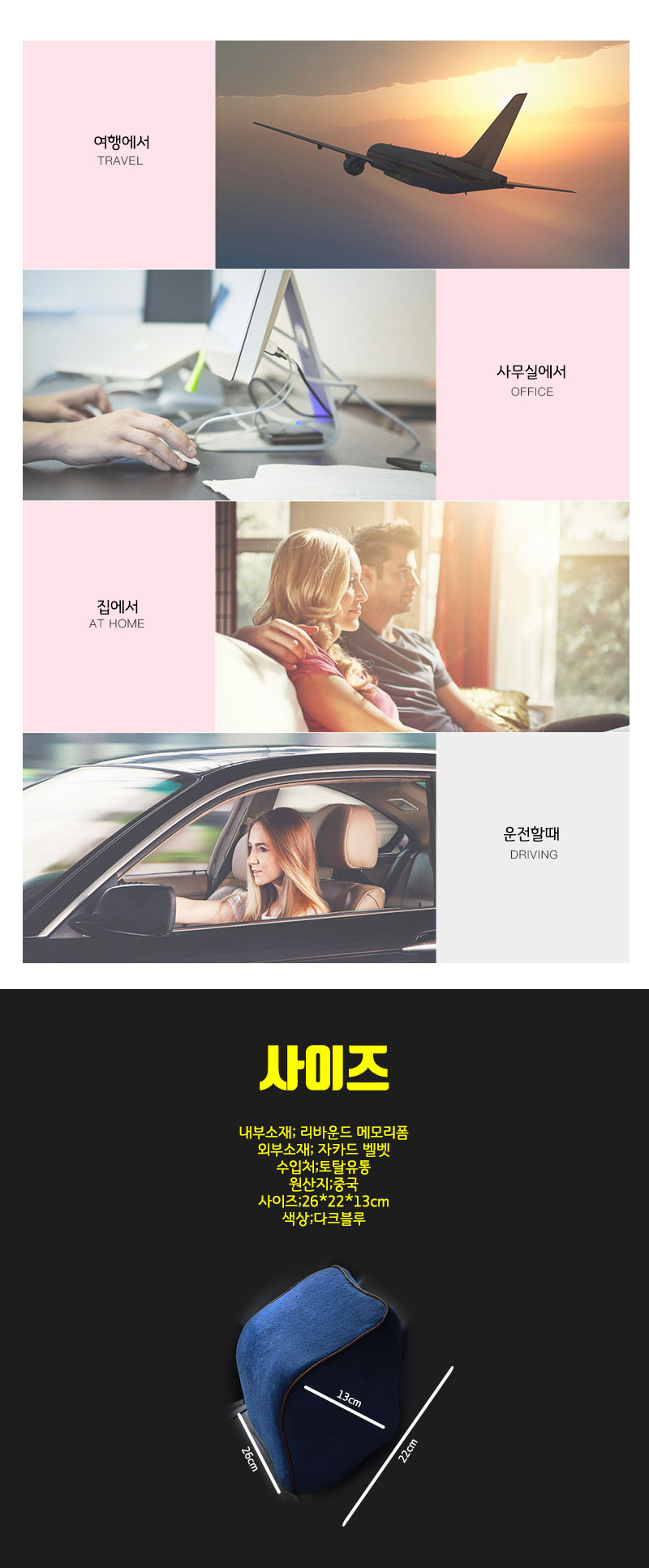 여행용 차량용쿠션 목쿠션 메모리폼 목배게