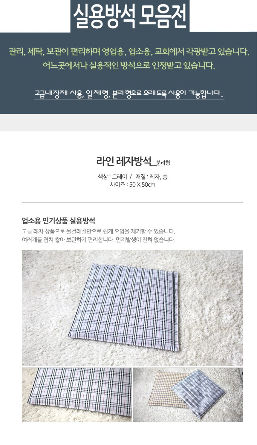 라인레자방석 분리형/그레이 닦아쓰는 방석 편한방석 이미지/