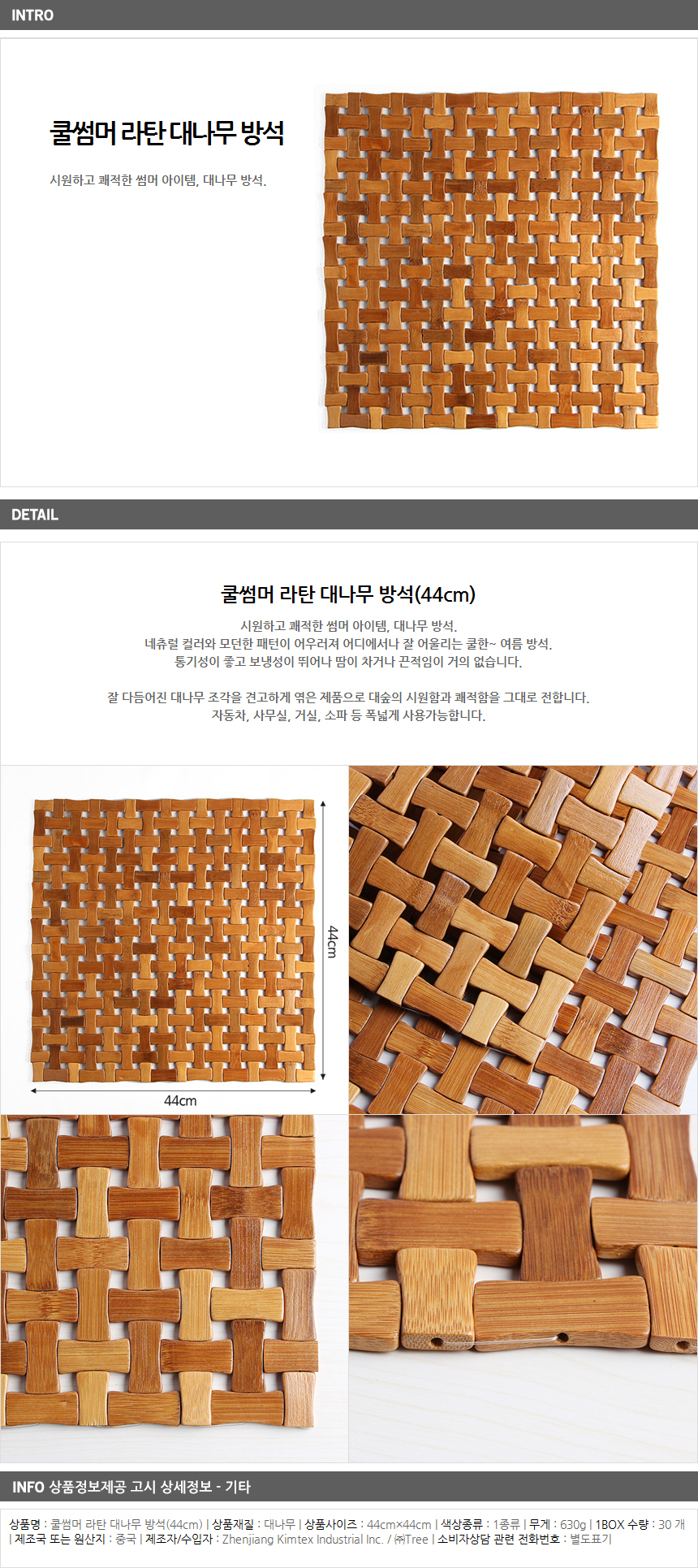 쿨썸머 라탄 대나무 방석(44cm) 이미지/
