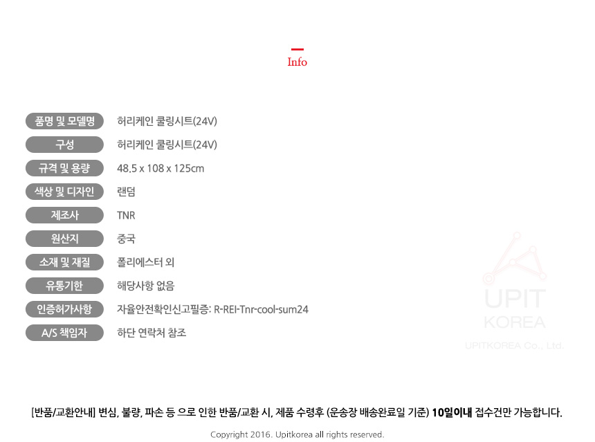 • 반품/환불조건: 도착후 1주일 이내 사용하지 않은 상태에서 가능합니다,초기제품 이상의 경우 동일한 제품으로 1:1 교환원칙, 사용후 제품이상은 A/S를 원칙으로 합니다,