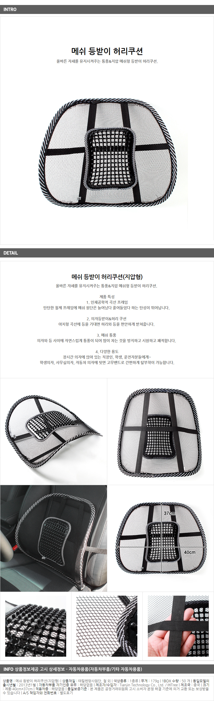 메쉬 등받이 허리쿠션(지압형) 이미지/