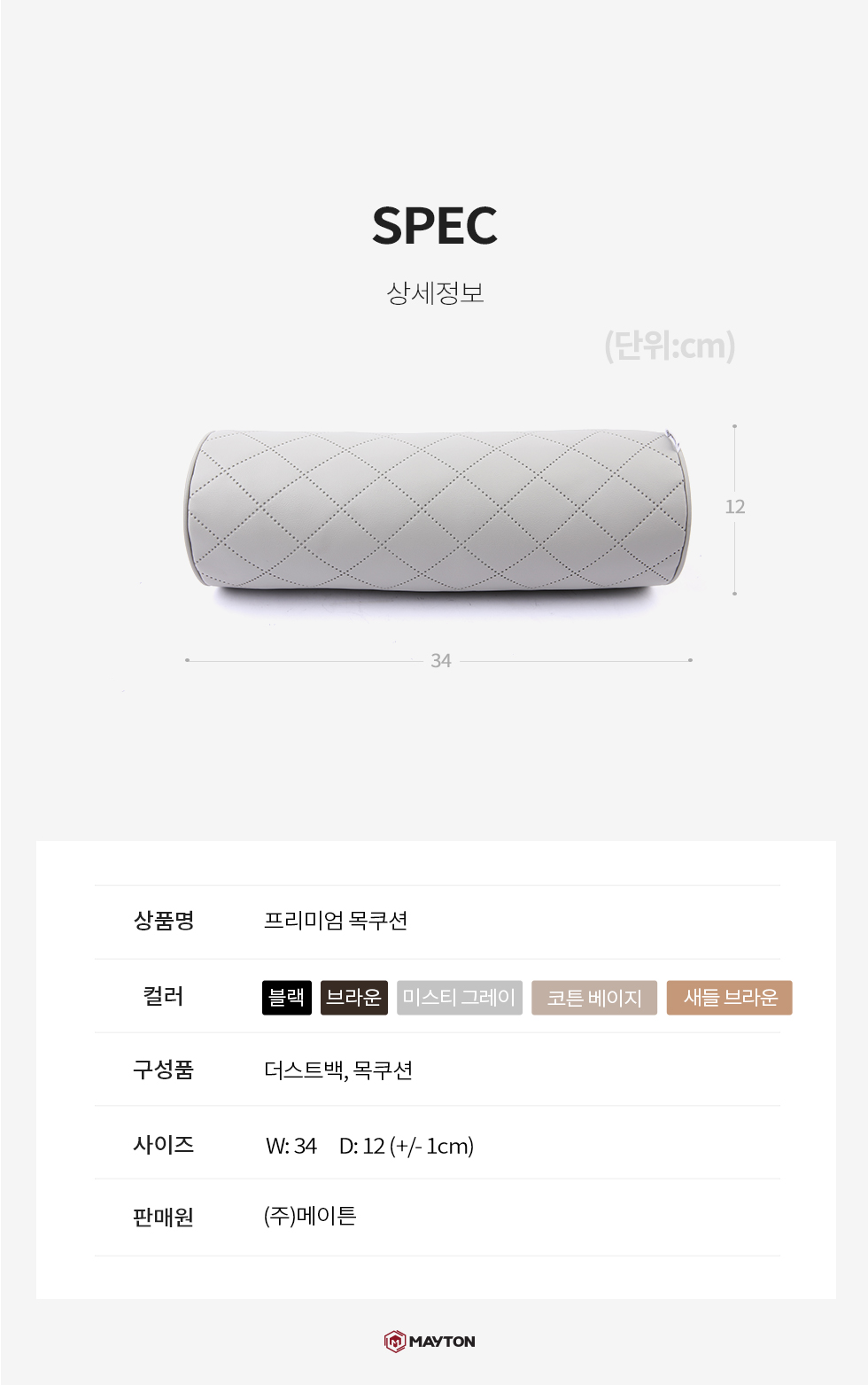 1. 품명 및 모델명 : 메이튼 차량용 프리미엄 목쿠션 자동차 목베개 [1+1이벤트]