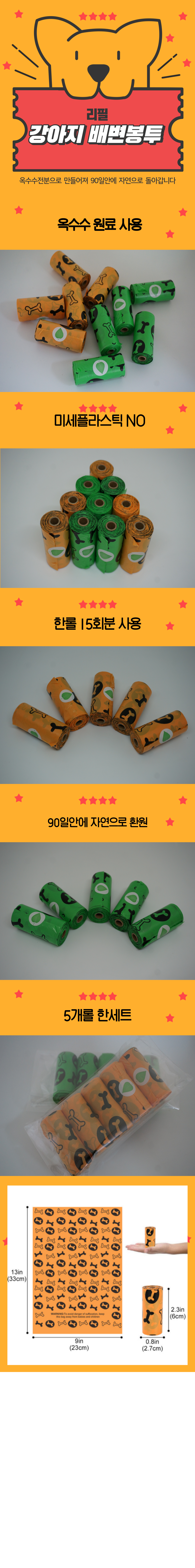 강아지 배변봉투 애완동물쓰레기봉투 리필(5개롤 한세트 75회분사용)