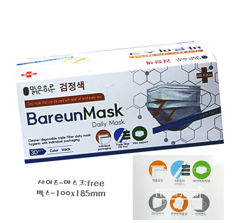 데일리 바른마스크 성인용30매(검정) 이미지/