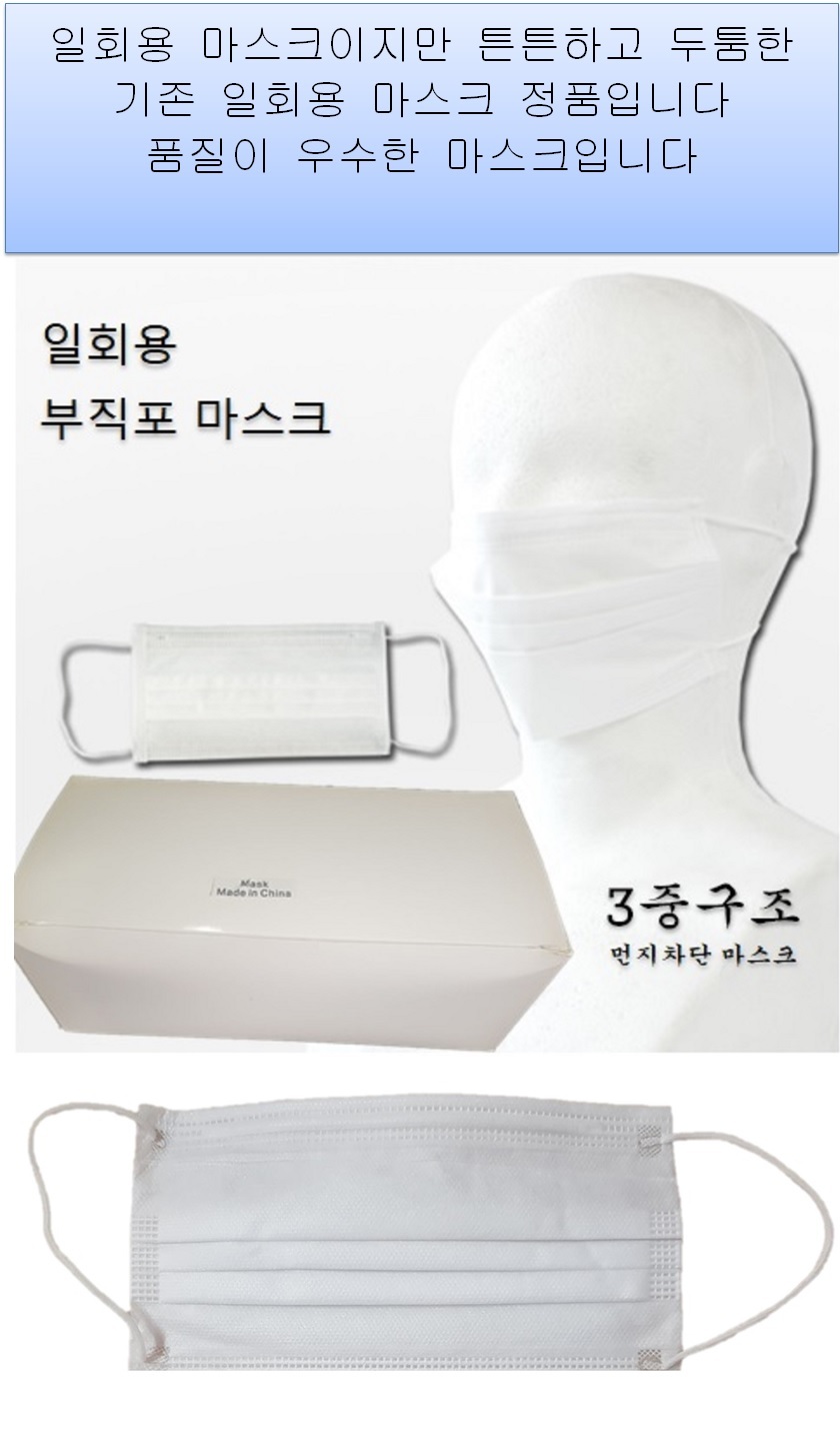 일회용 부직포 마스크 화이트 50매 40각 2000개 이미지/