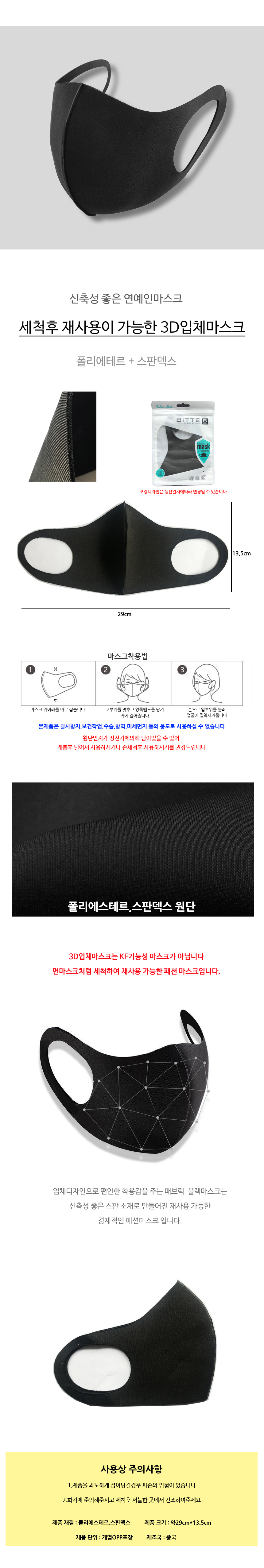 앞면보호 3D 입체마스크 블랙 패션마스크