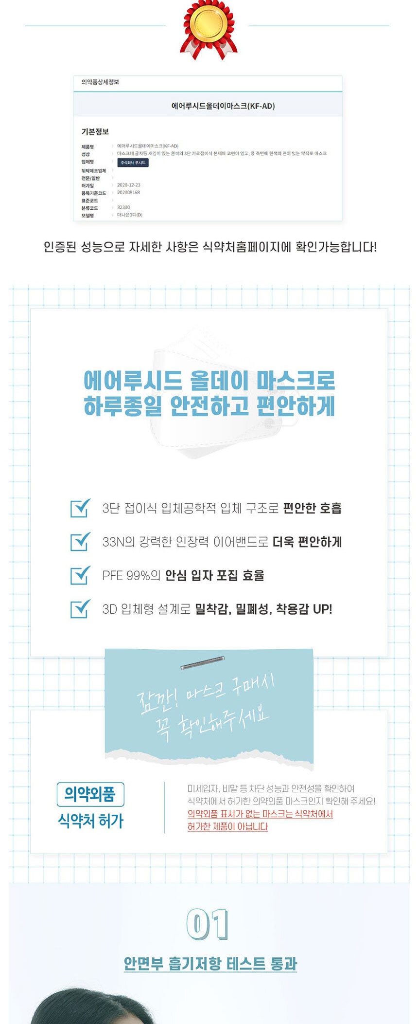 Air rucid 올데이 마스크 KF-AD/ 대형 일회용마스크 이미지/