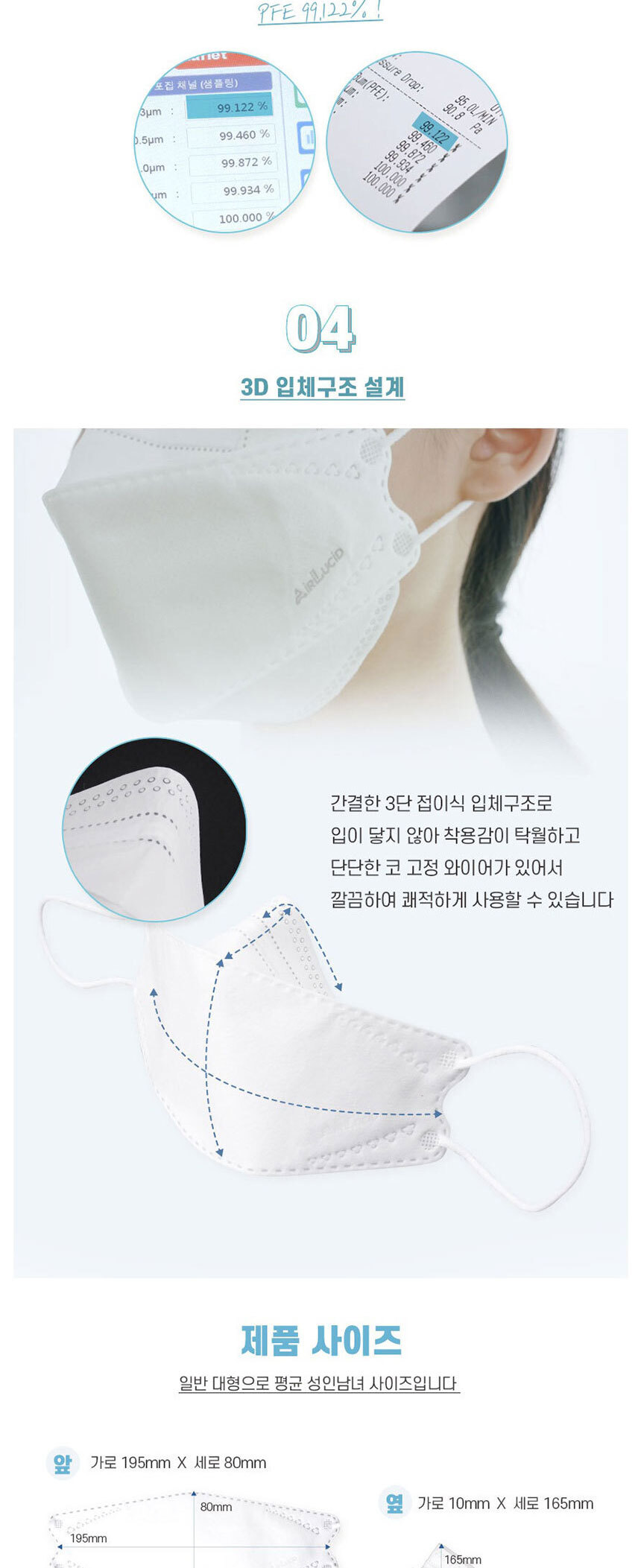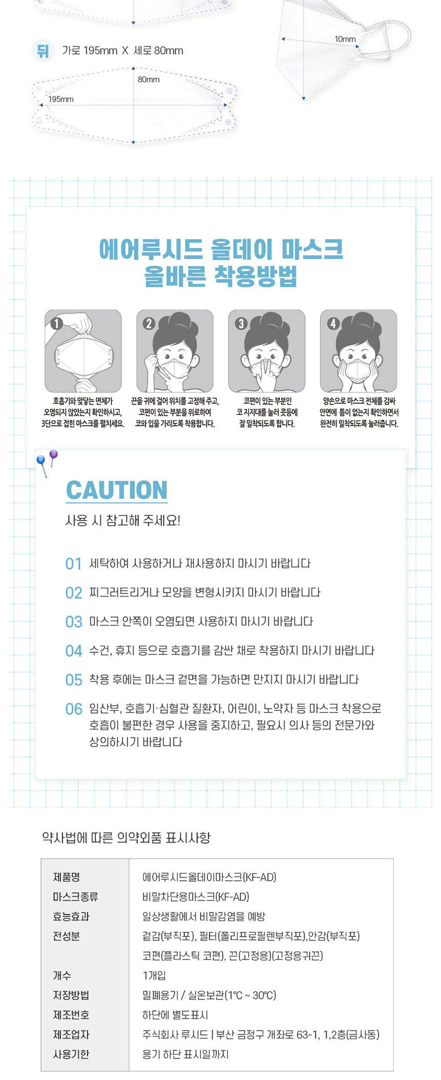 Air rucid 올데이 마스크 KF-AD/ 대형 일회용마스크
