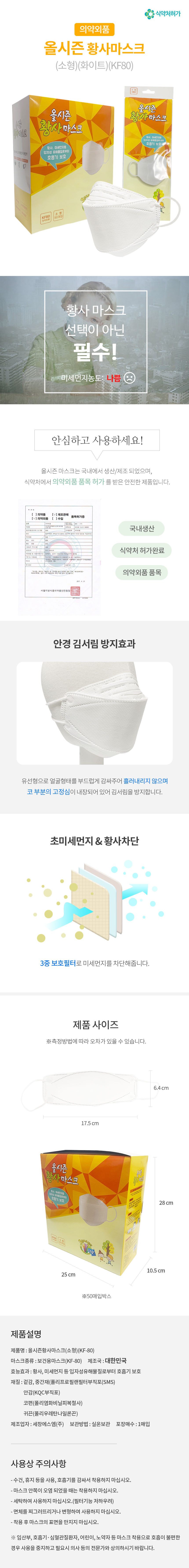 올시즌 황사마스크KF80 (1개입)(소형)(흰색) 국산 이미지/
